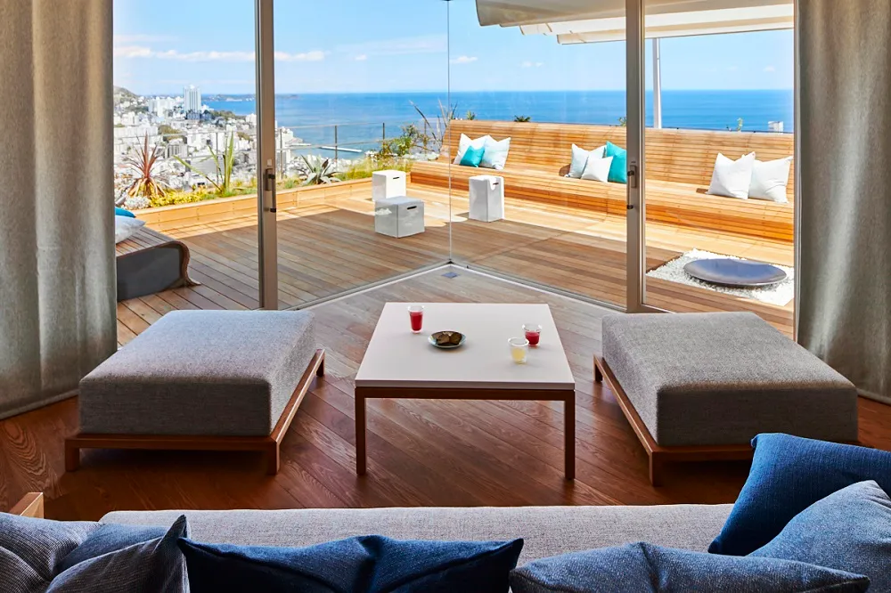 2011年12月に開業した熱海の山上の地に佇む全室オーシャンビューのリゾートホテル。スタイリッシュな空間デザインに加え、相模湾と熱海の街並みを一望する絶景が魅力。熱海の花火や夜景を存分に楽しめる環境が整う。