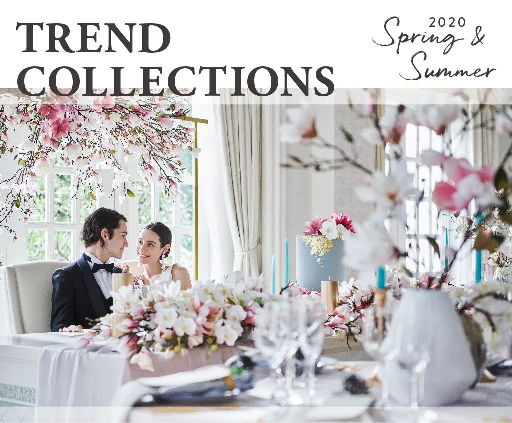 シーズンごとにテーブルクロスやお花、カトラリーなどのテーブルコーディネート、ドレスやタキシードといった衣裳関連など、世の中のトレンドを取り入れたアイテムを特色の異なるコレクションとして提案させていただく「TREND COLLECTIONS」。前回の[2019 Autumn&Winter(19AW)]に続き、今回は[2020 Spring&Summer(20SS)]から3コレクションを発表させていただきます。