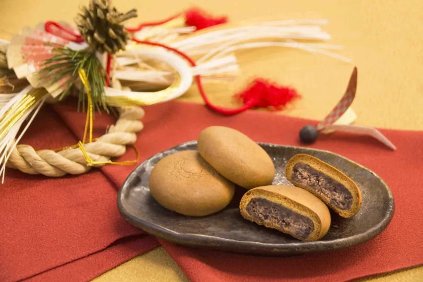 米粉を使用したもっちりとした皮で阿波和三盆糖を使用したつぶ餡を包んだ「来福焼き」