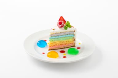 カラフルなレインボー色の異なるクリームの味も楽しめるショートケーキ