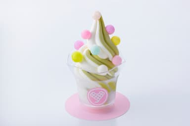 ミルク、抹茶、ミックスの三種類に「おいり」をトッピングしたカラフルなソフトクリーム
