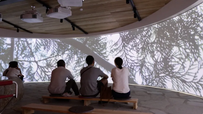180度の半円形スクリーンに様々なコンテンツを投影することで新たな空間が生まれます。空間全体を圧倒的な迫力と臨場感で包み込むことにより、視聴者は今までにない異次元の世界を体験することができます。