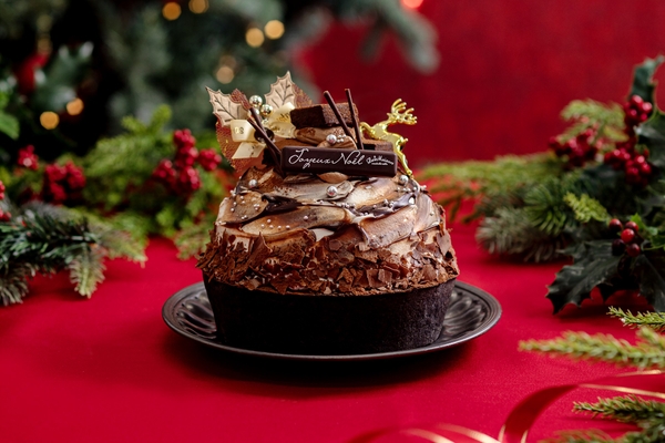 クーベルチュールチョコレートを使用した口溶けのよいチョコレートムースでヘーゼルナッツのムースを包み、アクセントにごま入りのチョコレートクランチと甘酸っぱいカルダモンと夏みかんのジャムをしのばせ、ショコラベイクドチーズタルトに重ねました。とろける生チョコレートを贅沢に飾った、クリスマスだけのチョコレートタルトです。
