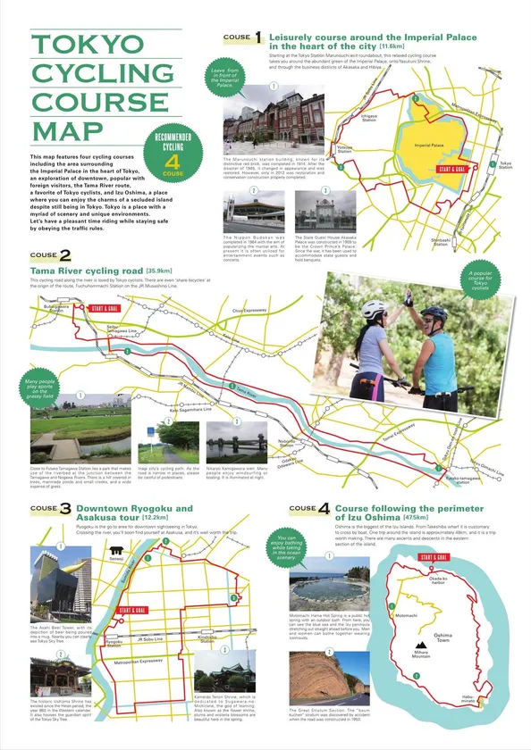 ・リーフレットの裏面では、レンタサイクルやシェアサイクルを利用する外国人観光客向けに東京都内の有名サイクリングスポットの地図を掲載しています。