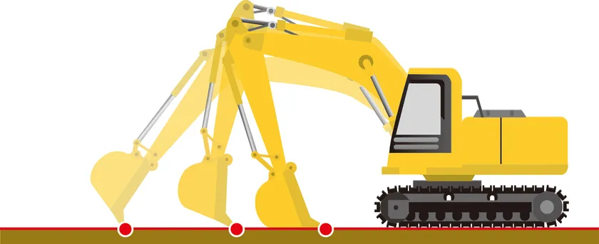 アームレバーを操作するだけで、バケットの刃先の高さが設計面と合うようにブームの角度を自動制御します。