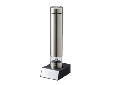 「電動ミル」(KPM-0100/S)は、大きさが2~5mmまでのブラックペッパーや岩塩などの食材を本体に入れ、上部のボタンをプッシュするだけの簡単操作で、お好みの粗さに挽くことができます。錆びにくく丈夫なセラミックグラインダーを使用しており、底部のつまみを回すことで、細挽き、粗挽きなど食材の粗さを調節できます。