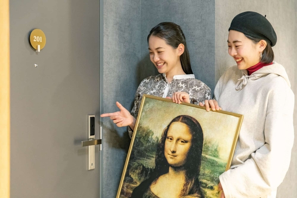 フロントでチェックインをすると、突然スタッフから絵画を渡されます。その絵画にはルームキーが埋め込まれており、それを見つけるまでは客室に入れません!