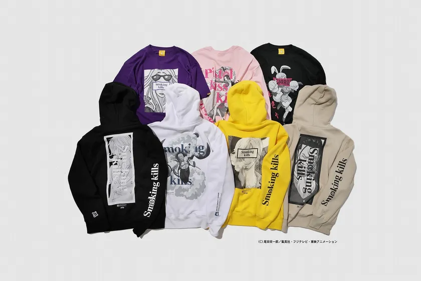 第2弾は「サンジ」、「クロコダイル」、「スモーカー」、「ヒナ」のイラストにsmokingkillsのデザインを組み込んだTシャツやパーカーなどに加え、「キャロット」や「ボア・ハンコック」のイラストを落とし込んだロングTシャツなど計24型を発売します。
