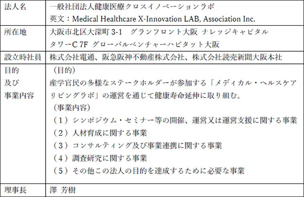 株式会社電通(代表取締役社長:山本 敏博)、阪急阪神不動産株式会社(代表取締役社長:若林 常夫)、株式会社読売新聞大阪本社(代表取締役社長:溝口 烈)(3社合わせて「設立3社」)は、産学官民の多様なステークホルダーとともに、生活者の健康寿命延伸に取り組む「一般社団法人健康医療クロスイノベーションラボ」(理事長:澤 芳樹、「クロスイノベラボ」)を設立しました。