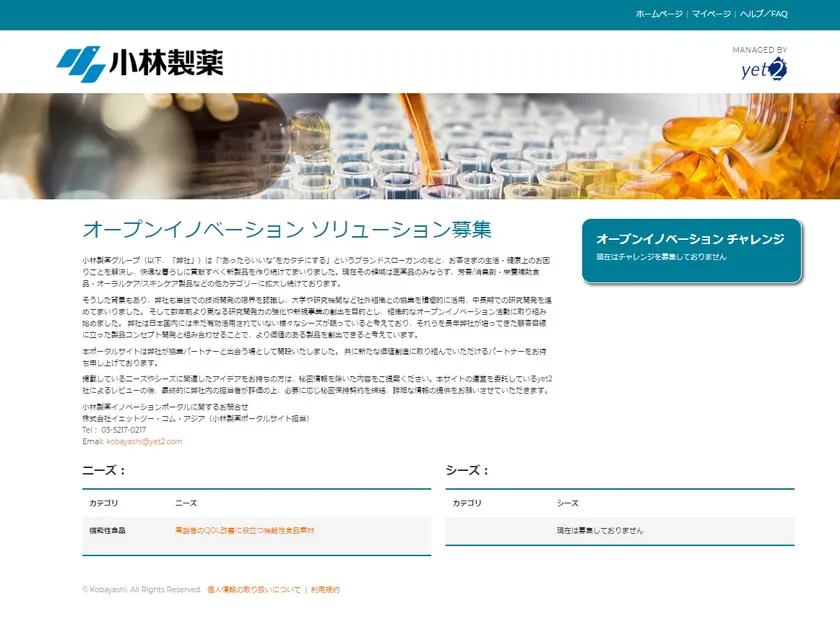 小林製薬オープンイノベーションポータルサイト