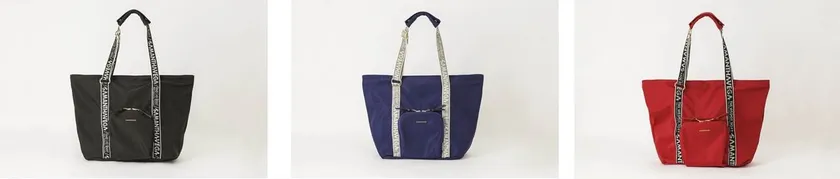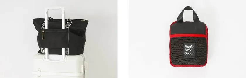 荷物が増えたときに便利なポケッタブルトートバッグ。ナイロン素材で軽く、手前のポケット部分にコンパクトに収納できるアイテム。
