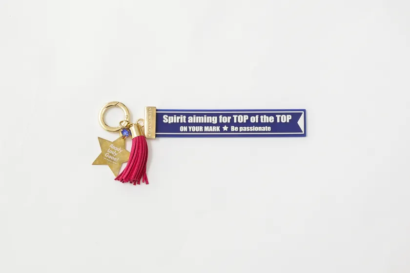 山梨学院大学スローガン“Sprit aiming for TOP of the TOP”-頂きを目指す勇気-が刻印されたオリジナルチャーム。