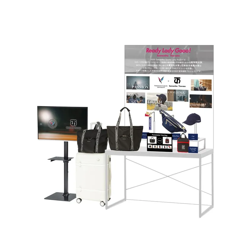 また、校内でのプロジェクト商品販売コーナーのVMD設計も立案。 『2020 Samantha Sports Lady Project』のメッセージが伝わる魅力的なディスプレイで販売訴求をし、プロジェクトの認知を行います。