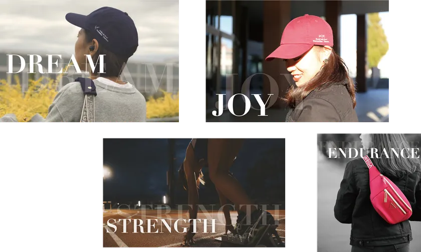 本プロジェクト参加校の現役カレッジスポーツに取り組む学生から様々なニーズをヒアリングし、数多くの意見交換を重ねて、生の声を取り入れた商品を設計。各大学のオリジナルカラーには、スクールカラーを採用し、ON・OFF両シーンでマルチに使えるボディーバッグ、ポケッタブルトートバッグ、チャーム、キャップの計4アイテム(各大学によりアイテム展開数は異なる)を3校と共に共同企画しました。プロジェクトのミッションを拡散するため、いずれも、学生が購入しやすい価格帯を設定。学生のみならず、保護者、地域一体となって身に付けられるファッショナブル且つ実用的なラインナップとなりました。(※商品は12月13日(金)山梨学院大学にて大学オリジナルカラー・プロジェクトオリジナルカラーの2色ずつ展開。日本女子体育大学にて大学オリジナルカラーの販売を開始。)