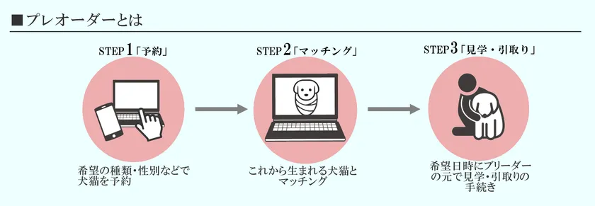 ブリーダーは、希望者の予約数をもとに繁殖させる頭数を調整し、生まれてからの子犬子猫は、親元でしばらく過ごします。申し込みがあってはじめて生まれる仕組みであるため、引き取り手のない子犬・子猫が増えすぎることを防いでいます。そして、飼い始めるまでに時間をかけることで、衝動買いを防ぎ、飼い主はペットを飼うための十分な知識を得ることができます。私たちはこの飼い方をモデルに、日本の生体販売の仕組みに一石を投じようと変えようと考えました。それが予約型紹介サイト「モコペットブリーダー」です。