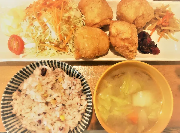 ★かどカラ家の塩唐揚げ定食 850円…雑穀米と白米がお選びいただけます。