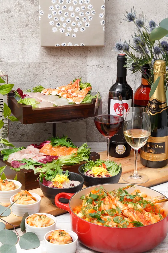 ディナータイムには、冬に美味しい海の恵みを使用した特別メニューが登場いたします。自分で作る「勝手海鮮丼」や、スウェーデンの伝統料理をラジョウ風にアレンジした「フグのトマト鍋」など、シェフこだわりのスペシャリテが登場。焼きたてをご提供する「ホタテとエビの明太子グラタン」などライブ感あふれるメニューも。