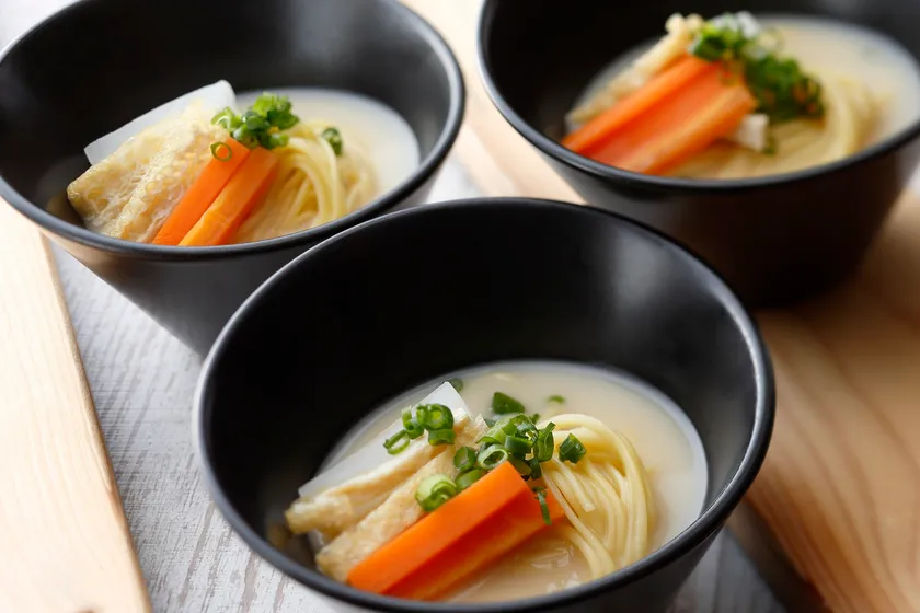 酒粕の香り高いラーメン。酒粕のうまみと甘みを感じるスープは、心も体もほっと温めるやさしい味わい。