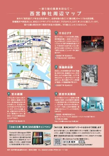 阪神電気鉄道株式会社(本社:大阪市福島区、社長:秦雅夫)では、12月16日(月)から、これまでに計34万部を配布している「ぬりえ旅 阪神 ~ ぬりえが誘う、旅ゴコロ。~」の「西宮駅(西宮神社)」版と「福駅(福の舟溜まり)」版の2種類の配布を開始します。
