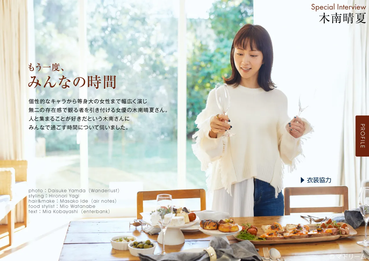 最新号には、無二の存在感で観る者を引き付ける、女優の木南晴夏さんが登場!「人を家に呼ぶのがもともと好きで、みんな結構ふらーっと来たりします。」と、自宅に人を招くことが多いという木南さん。「外で会うより家でのんびり一緒に過ごす方が距離も近くなる気がします。」と語る、料理上手な木南さんのもてなし方や人と過ごす時間の楽しみ方を伺いました。パンシェルジュ2級を持っている木南さんならではの “パン愛”も随所に感じられるスペシャルインタビュー、ぜひご覧ください。