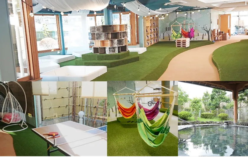 (2) インテリア:森の温泉をイメージした可愛らしい内外装・インテリアでリラックスできる「おしゃれな空間」へ