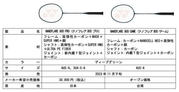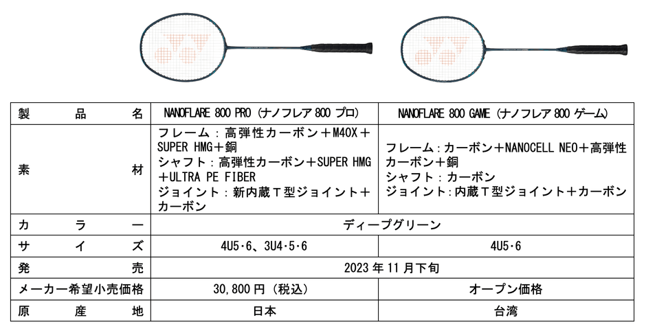 ヨネックス株式会社(代表取締役社長:アリサ ヨネヤマ)は、弾き性能を追求し、攻撃的なドライブを生むバドミントンラケット「NANOFLARE 800 PRO(ナノフレア800プロ)」、「NANOFLARE 800 GAME(ナノフレア800ゲーム)」を2023年11月下旬より発売いたします。