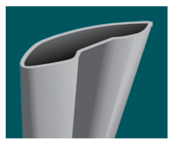 側面を厚くし、剛性を高めた厚ラケ形状とすることで、スウィング時の変形を抑える。