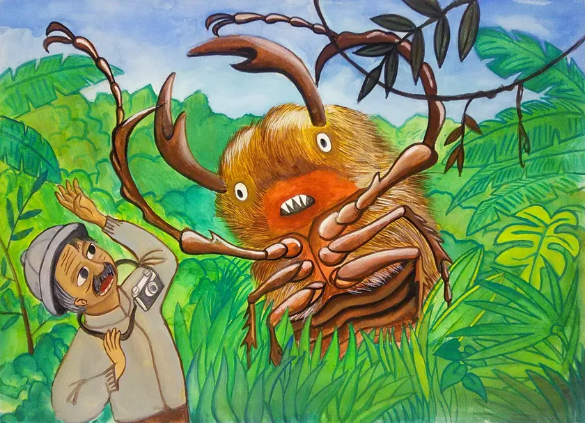 ラーオ族の言い伝えによると、1500年以上前の紀元500年頃、アルタイ山脈の南東エリアに毎年6月から8月頃には、金色のフサフサした毛を生やした巨大なカブトムシの様なムーア・ミーアという生き物が現れ、何人もの村人が喰われたとされる。1965年、昆虫学者のガレスピー博士は、ラーオ族の伝説の確認をすべく、ラオスの村に入った。部落の長をはじめ、多くの村人にこの伝説についての聞き込みを続けたが、特に有益な情報は得られなかった。