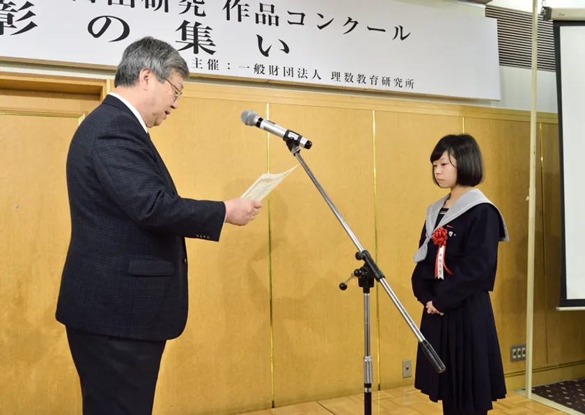 公益財団法人日本数学検定協会(所在地:東京都台東区、理事長:清水 静海)は、一般財団法人理数教育研究所が主催している「塩野直道記念 第7回『算数・数学の自由研究』作品コンクール」(通称「MATH(マス)コン」)の優秀賞の1つである「日本数学検定協会賞」を決定し、2019年12月15日(日)に東京都内で行われた表彰式で受賞者を表彰いたしました。受賞したのは、「雨傘の形と値段の相関性」を調査し数学的に考察した作品を応募した大阪府の中学校2年生です。