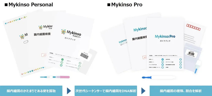 腸の健康への関心の高まりを背景に、自宅にいながら腸内フローラ検査が受けられるキットが登場しています。「Mykinso」は、当社が提供している検査キット。少量の便を採取して送るだけで、DNA解析による腸内フローラ分析が受けられます。検査キットは個人で購入して、web上のマイページから結果を確認できる「Mykinso Personal」と、導入医療機関を通して受ける「Mykinso Pro」の2種類があります。