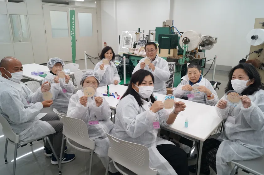 国内唯一のストーマ装具製造工場であるアルケアの工場で、ストーマ装具の製造工程や品質検査工程を見学。ストーマ装具の製造体験も実施し、ストーマ装具への理解を深めていただきました。ツアー参加者同士や当社スタッフとの情報交換を行い、普段はなかなか聞けない悩みや生活上の工夫などを共有しました。