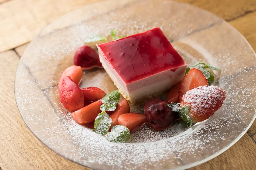 自家製のいちごレアチーズケーキと色々なベリーの組み合わせをお楽しみください。