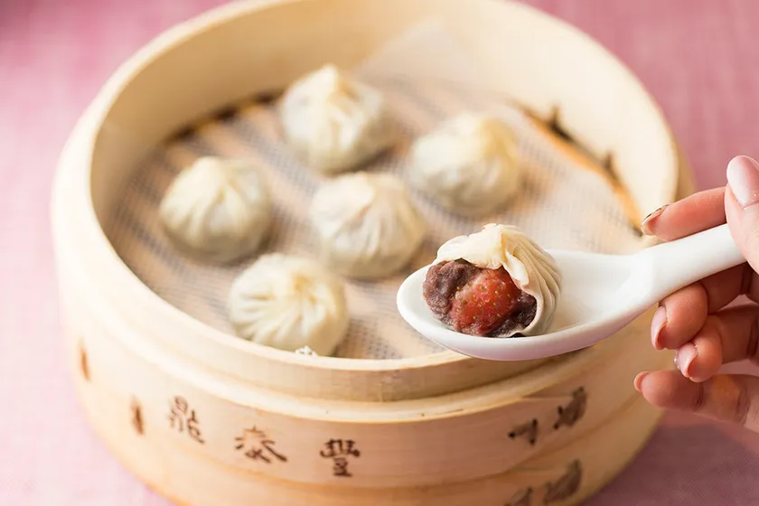 毎年大人気のデザート小籠包。いちごの酸味とあんこの甘味が絶妙にマッチする一品です。
