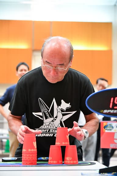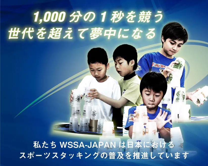スポーツスタッキングは、12個のプラスチック製のカップを、決められた形に積み上げたり崩したりするスポーツで、そのスピードを競います。1985年頃、アメリカの子どもたちが紙コップをピラミッド型に重ねて遊んでいたことから始まり、現在では世界54ヵ国で楽しまれています。日本では2005年頃から普及し始め、競技人口は約1万人。一般社団法人WSSA-JAPANが、日本におけるスポーツスタッキングのさらなる普及を推進しています。