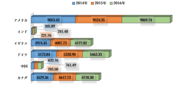 一人当たりの医療費、PPP(米ドル)– 2014-2016年