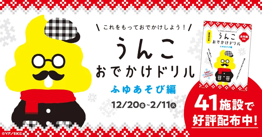 おでかけ施設の情報とともに、楽しく学べるオリジナルうんこ問題収録のドリルは数量限定!今年の冬は「うんこおでかけドリル」をゲットして冬のお出かけをお楽しみください。
