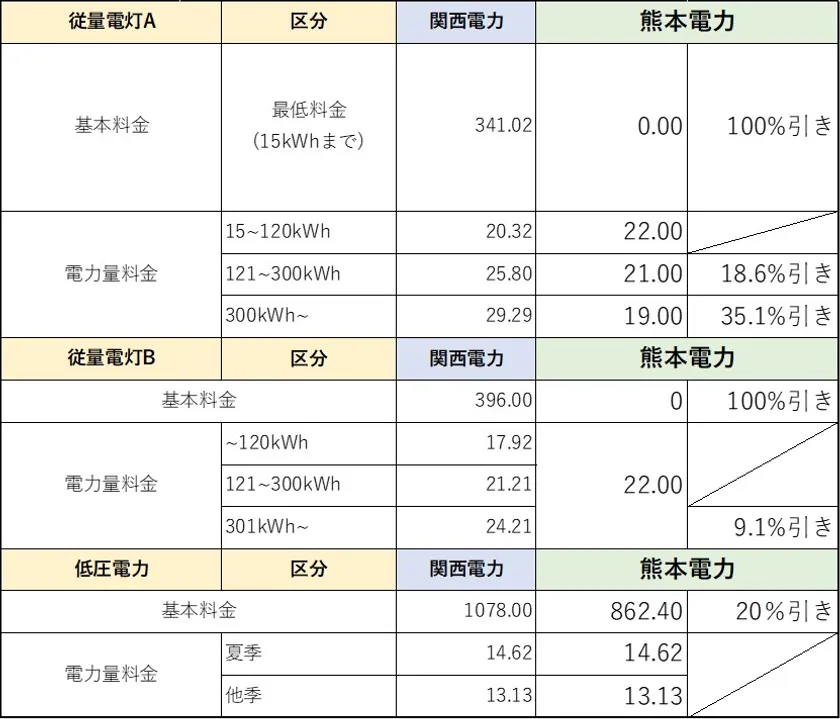 関西電力エリアの料金