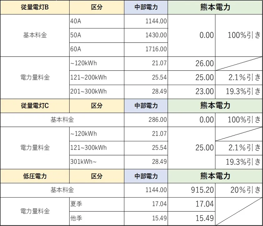 契約種別 :従量電灯B、従量電灯C、低圧電力