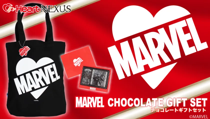 本商品は、MARVELの人気キャラクター「アイアンマン」と「スパイダーマン」をデザインしたチョコレートと、ハートモチーフのオリジナルMARVELロゴをデザインしたトートバッグ、ラバーストラップをセットにしたギフト商品です。