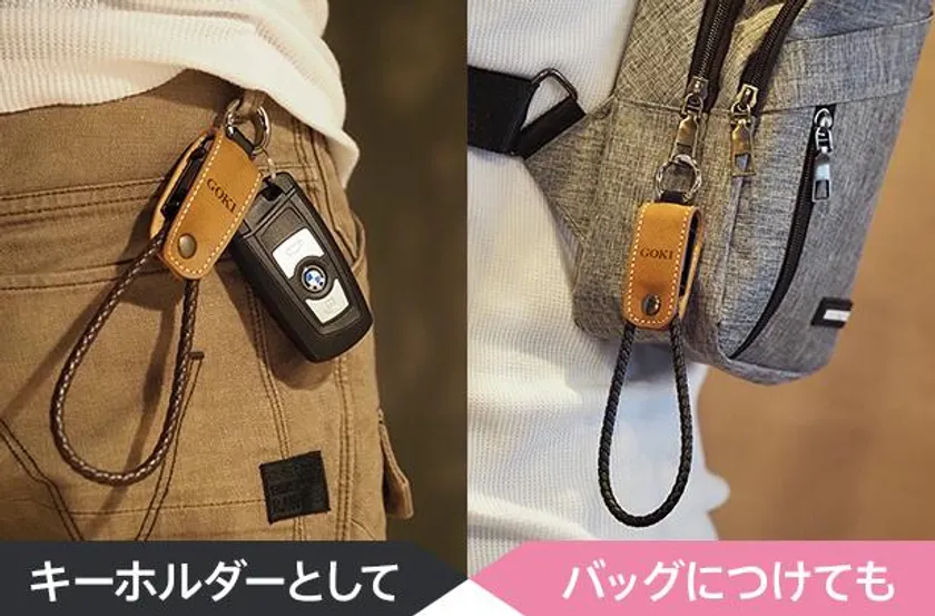 小さくて無くしやすいType-Cまたはライトニング端子を背面のポケットに収納して、キーホルダーとしておしゃれに持ち運びが可能です。