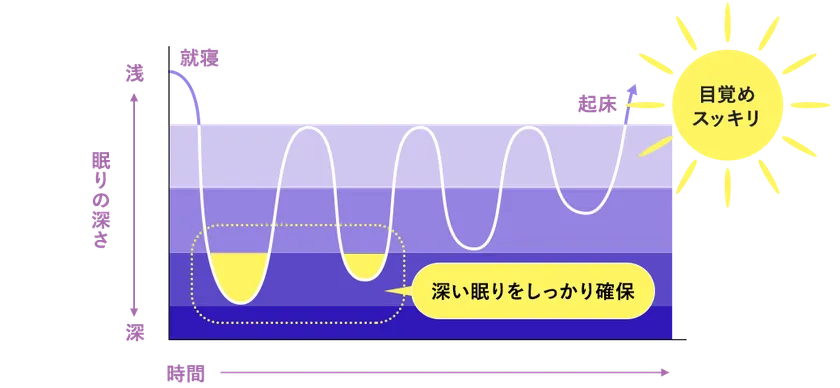 ◆ L-テアニンの摂取により興奮を抑えて入眠しやすくなり、質の高い睡眠へ導きます。