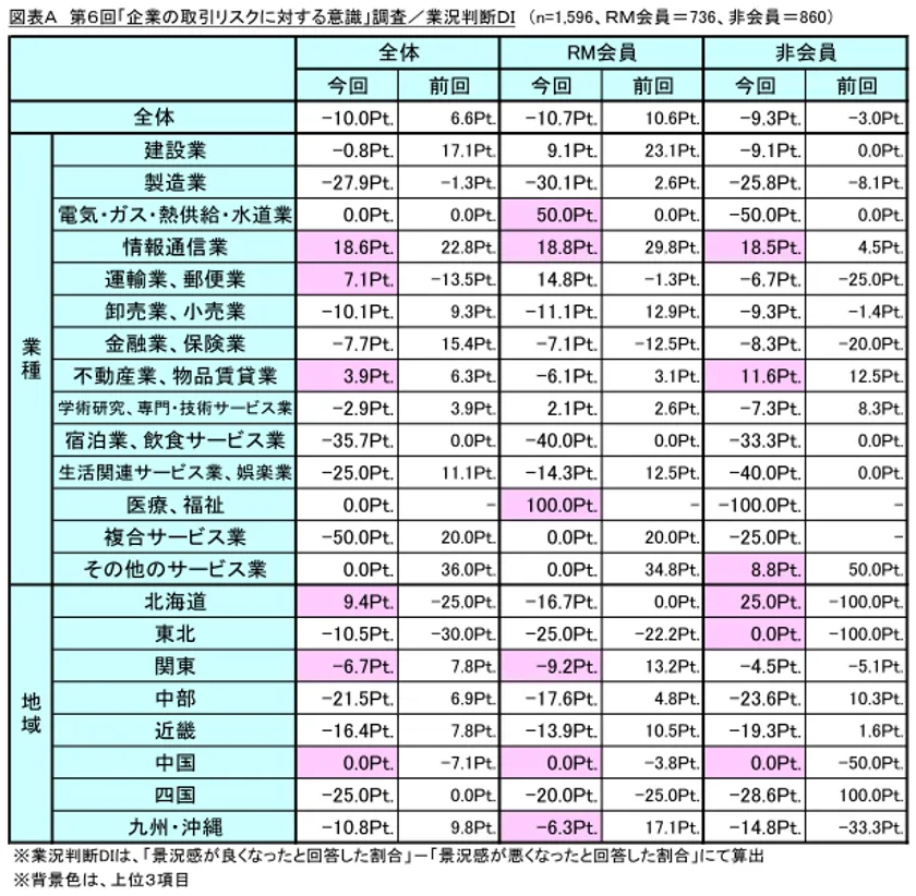 ・調査名称 :第6回「企業の取引リスクに対する意識」調査