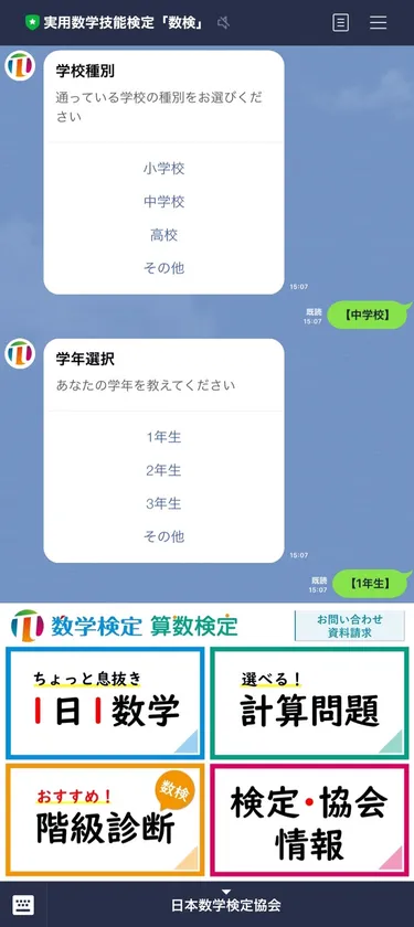 数学検定LINE公式アカウント画面(イメージ)