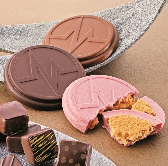 大阪初のチョコレート専門店として創業した「エクチュア」。使用ワインの「ペチュラ ロゼ」の持つ爽やかな甘酸っぱさやほのかなスパイスの香りを活かすために可能な限りガナッシュに練り込まれた贅沢なプラリネです。シンプルにワインの味を楽しめるビターといちごのアクセントを利かせたミルクの2種類が登場。