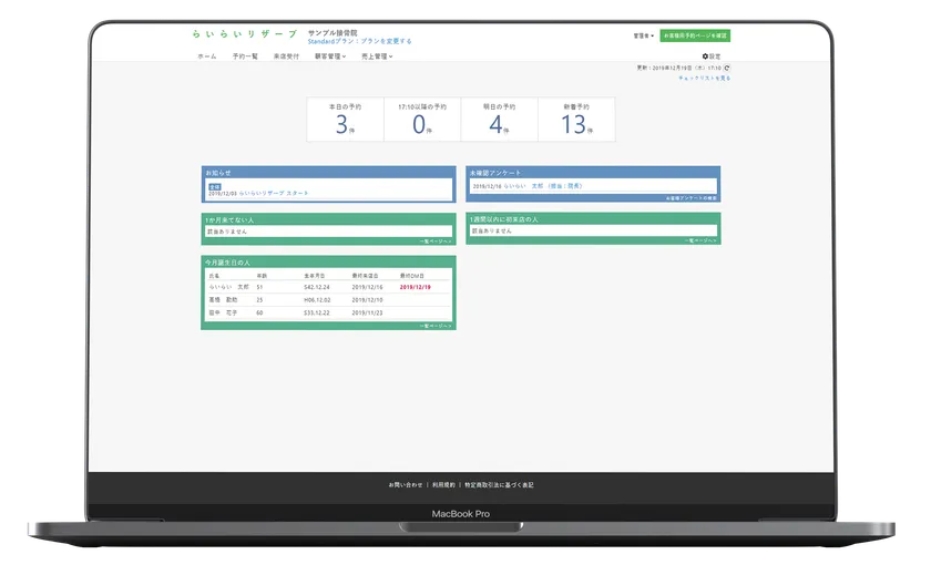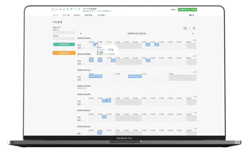 無料で使える予約システム 「らいらいリザーブ」が12/23にリリース! 「整体」「エステサロン」「接骨」などの業種に適応