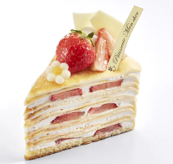人気のミルクレープに、大きな苺を飾った新バージョンが登場。