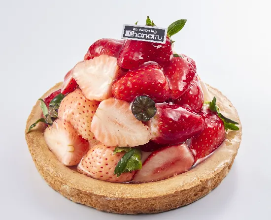 香りがよい奈良県産白いちご「淡雪」、ほどよい酸味の長崎県産「ゆめのか」、濃厚な甘味の「あまおう」の3種類が味わえる贅沢なタルト。