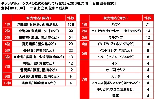 ◆“デジタルデトックス”で行きたいところ 国内1位は「沖縄」、海外1位は「ハワイ」