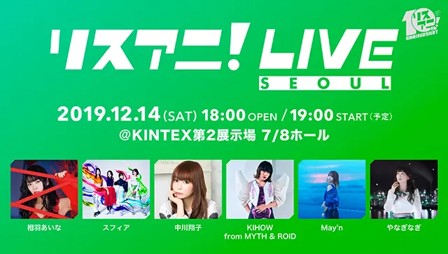今年4月に10年目を迎えた「リスアニ!」の10周年プロジェクトの一環として、KINTEX第2展示場 7/8ホールにて開催中の“Anime×GameFestival2019”のステージにて行われた“リスアニ!LIVE SEOUL”。