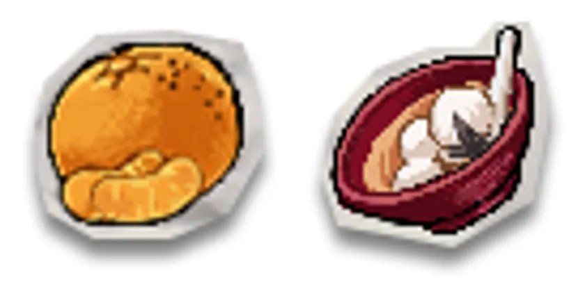 「みかん」2個、「小豆モチの揚げ物」2個、「仏跳牆」2個
